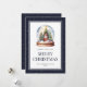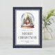 Aquarelle bleu Joyeuse carte de Noël avec le Père Noël à l'intérieur d'un globe de Noël. Personnalisez facilement cette carte bleue de vacances enneigée avec votre nom de famille et l'année.
