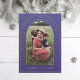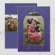 Arche étoilée violette et dorée avec le salut "Gloire à Dieu" et espace facultatif pour les photos et un message au verso.