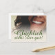 Glücklich steht Dir intestin ! Kompliment Karte mit lachendem Frauengesicht und handschriftlichen Grüßen auf der Vorderseite der Karte. Restliche Flächen stehen zur freien Verfügung.