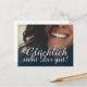 Glücklich steht Dir intestin ! Kompliment Karte mit lachendem Frauengesicht und handschriftlichen Grüßen auf der Vorderseite der Karte. Restliche Flächen stehen zur freien Verfügung.