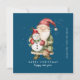 Un gnome habillé de rouge se dresse à côté d'un bonhomme de neige dans un elfe vert, le casquette et le foulard rouge. Ils sont entourés d'une poussière de neige blanche qui s'opère sur l'arrière - plan bleu foncé. L'esthétique minimaliste est créée avec un simple Joyeux Noël et Bonne Année ci-dessous. Nom commercial perpendiculaire sur la marge droite. Un message de Noël modifiable est à l'arrière et un endroit pour votre entreprise. Placez facilement votre logo d'entreprise ci-dessous. Un petit sapin de Noël orne le sommet.