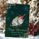 Gnome, flocons de neige et traîneau sur l'arrière - plan vert font de cet hôtel une carte de voeux de Noël ou de vacances parfaite pour les amis et la famille.