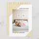 Gold glitter stripes contemporains New Year's holiday photo card. A striped pattern of diagonal stripes covers the upper left and bottom right corners accented with a gold heart. Photographe © Storytree Studios, Stanford, CA