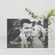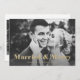 Cette carte de Noël simple et élégante dit "Marié & Joyeux" en gras, fausse typographie moderne or avec votre photo mariage en face de la carte. Votre message de vacances personnel peut aller sur le dos, avec une autre photo mariage. Une façon élégante d'annoncer votre mariage à vos amis et à votre famille, tout en leur souhaitant un Joyeux Noël.