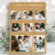 Gold Photo Collage Modern Holiday Card. Faites-vous plaisir avec notre carte de vacances photo personnalisée et chic "A Year To Remember". Ce gardien élégant, avec une police de machine à écrire vintage et un espace pour 8 photos de famille, est un parfait mélange de nostalgie et de style. Le texte blanc sur un arrière - plan d'or amplifie son attrait visuel. Personnalisez et rendez vos souvenirs intemporels !