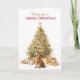On the front of this Christmas card, a beautiful Irish Terrier dog sits in front of a Holiday tree. The tree is decorated in gold, and matching gift packages are beneath it. The gold and red text says "Wishing you a MERRY CHRISTMAS". Inside text fields which you may customize to anything you'd like. Be sure to see the other dog themed cards and gifts in our store.