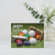 Bonne Pâques au golfer Carte postale de vacances avec voiturette de golf et golf sur l'herbe verte arrière - plan