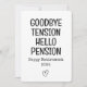 Faites sourire papa avec cette carte de retraite amusante "Goodbye Tension Hello Pension Happy Retirement", parfaite pour célébrer son grand jalon. Avec un design humoristique, cette carte est un moyen léger de montrer votre appréciation pour tout son travail acharné et son dévouement. Qu’il soit jumelé à un don réfléchi ou donné seul, c’est une excellente façon d’honorer papa en entrant dans sa retraite bien méritée avec rire et amour!
