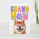 Le rose, le violet et le jaune, tous dans les tons pâles, créent un texte audacieux sur cette carte amusante de la fête des grands-parents pour la grand-mère d'un petit-chien Akita.