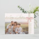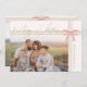 Celebrate the season with this chic grandmillennial coquette merry Christmas photo holiday card, featuring a pink coquette bow and playful preppy green stripes. A vintage-inspired touch of nostalgic charm, mixing granny chic vibes with festive fun. The simple layout and sweet details bring a warm, whimsy feel to your holiday greetings. Please feel free to reach out with any questions regarding the product's design; we are happy to help!