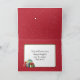Grange rouge avec couronne verte de Noël accrochée à une vieille clôture en bois dans des flocons de neige. Le texte intérieur peut être modifié.