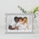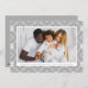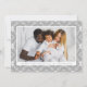 Carte de vacances festive avec votre photo horizontale encadrée en blanc avec un arrière - plan à motif noir gris et blanc. Personnalisez la carte de Noël de flocon de neige ordinaire avec votre message d'accueil personnalisé et votre nom de famille en lettres grises. La carte inverse pour afficher votre message personnel.