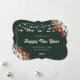 Elegant green New Year card featuring a watercolor painting of poinsettia, holly and red berries along with string lights. Easily personalize online.