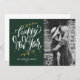 Send a personal and beautiful greeting with this personalized green Happy New Year card, featuring elegant calligraphy and charming greenery accents. Customize the card by uploading your favorite photos, adding your names, and crafting a heartfelt message. The combination of modern typography and nature-inspired elements makes this card a sophisticated choice to send your warmest wishes. Whether for friends, family, or business associates, it’s the perfect way to ring in the new year.