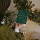 Deep forest green background, gold line-art details, and a refined script make this card perfect for sending warm, faith-filled holiday wishes.