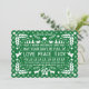 Green Love, Peace, Joy papel picado Carte de style pétoncle de Noël avec plusieurs éléments de Noël tels que la crèche minimale, les arbres de Noël, cerfs, anges, colombes et le texte "Amour, Paix et Joie" "Croire" et "Fa la la la la la la" en blanc sur vert. Il est également orné de fleurs et de points. Cette carte de vacances dans le style art populaire mexicain est personnalisable.