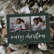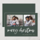 Cette simple carte de vœux familiale verte et blanche classique présente une typographie moderne et décontractée qui dit "Joyeux Noël", avec une grille de deux photos sur le devant pour une conception de vacances élégante, moderne et minimaliste.