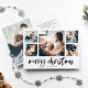 Cette simple et classique carte de vœux familiale noir et blanc présente une typographie moderne et décontractée qui dit "Joyeux Noël", avec une grille de photos multiples de cinq photos sur le devant et une autre au dos.