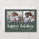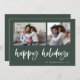 Ce carte photo de vacances familial classique et classique, vert et blanc, présente une typographie de style décontracté et moderne qui dit "happy holiday", avec une grille de deux photos à l'avant pour un design de vacances élégant, moderne et minimaliste.