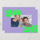 Ce carte photo de Nouvel An moderne et ludique présente de grands numéros de typographie vert vif avec une seule photo horizontale sur un arrière - plan mauve clair délicieux. Le message d'accueil sur le devant dit "Bonne année". Au verso, vous pouvez ajouter une autre photo ou un autre texte à l'arrière à l'aide de l'outil d'édition.