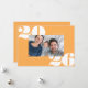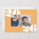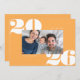Ce carte photo de Nouvel An moderne et ludique présente de grands numéros de typographie blanche avec une seule photo horizontale sur un arrière - plan jaune délicieux. Le message d'accueil sur le devant dit "Bonne année". À l'envers, il y a un arrière - plan blanc. Vous pouvez ajouter une autre photo ou un autre texte à l'arrière en sélectionnant "personnaliser design plus loin".