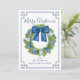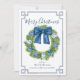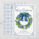 Envoyez des vœux de vacances intemporels avec cette carte de vœux de Noël à couronne Chinois, où le bleu et le blanc classiques rencontrent la verdure festive. Le design élégant présente une couronne de fleurs aquarelle ornée de décorations bleues et blanches et nouée avec un charmant nœud bleu, encadrée par une bordure décorative. Personnalisée avec votre propre message et votre nom, c'est le moyen idéal de partager vos chaleureux vœux dans un style à la fois traditionnel et chic. Une belle carte souvenir pour la famille, les amis ou les proches qui apprécient le charme raffiné des fêtes.