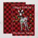 Conception de vacances de zèbre festive - Lumières scintillantes rouges et vertes - Carreaux tartan rouge et noir - personnalisable.