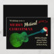 Apportez une musique de guitare festive à la saison de noël avec cette joyeuse carte de fête cool moderne de noël. Guitare acoustique verte dessinée à la main et portant un chapeau de Père Noël avec notes musicales et script de typographie avec un modèle facile à personnaliser, Idéal pour les familles amateurs de musique à envoyer des Joyeuses Fêtes et pour les joueurs de guitare, professeurs de musique et musiciens. OEuvre originale de Catherine Sweetman