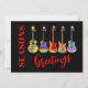 Faisons du rock et roulons ce Noël avec ces jazzy amusants et colorés, des guitares en chapeaux de Père Noël. Guitares acoustiques, guitares électriques et guitares semi-acoustiques design psychédélique coloré pour apporter l'acclamation de vacances à vos amis musiciens guitaristes et rock stars en herbe. Cette drôle de carte Joyeuses Fêtes d'instrument de musique peut être facilement personnalisée en utilisant les modèles. OEuvre originale de l'artiste Catherine Sweetman