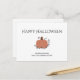 Carte postale Halloween avec dessin citrouille orange et typographie personnalisable noir. Idéal pour ajouter mignon tout en envoyant des voeux d'Halloween!