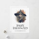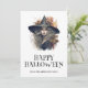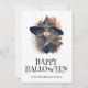 Carte d'Halloween aquarelle avec une sorcière dans un casquette. Personnalisez facilement cette carte d'Halloween personnalisée avec votre nom de famille et votre texte.
