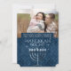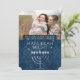 Les teintes bleues traditionnelles se combinent avec une belle menorah sur cette photo saluant avec de la place pour trois de vos photos préférées. Ajoutez votre nom pour une touche personnelle et cherchez notre poste de coordination, étiquettes de adresse et articles de papeterie.