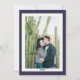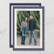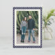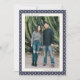 Ce design Hanoukka moderne présente une bordure géométrique bleu marine inspirée des motifs du milieu du siècle. L'avant présente une grande photo encadrée d'ivoire croustillant et de typographie propre. L'arrière comprend de l'espace pour une photo supplémentaire et un message de vacances personnalisé.