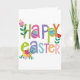 This cheerful “Happy Easter” design pops with bright spring colors and playful charm. Each letter is uniquely colored in lively shades of pink, green, purple, orange, and blue, creating a joyful, eye‑catching rhythm. Some letters transform into decorated Easter eggs, complete with soft pastel stripes that add a sweet seasonal touch. Small flowers and leafy accents peek around the text, giving the whole piece a fresh, garden‑in‑bloom feeling.