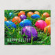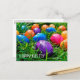 Send a fun postcard featuring a photo of colorful purple, blue, yellow-orange, and pink Easter eggs scattered on green grass with the words "Happy Easter" in a white geometric font on the lower left. To see the photograph Colorful Easter Eggs on Grass on other items, click the Rocklawn Arts link below.