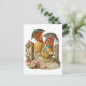 Two hens going for a walk with beautiful red bonnets and teal and red parasols. Apple blossoms in the foreground. Vintage Victorian Easter greeting.