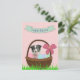 Wish Happy Easter to the ones you love with this cute dog in a pink outfit. This adorable doggie is sitting in an Easter basket along with several colorful Easter eggs. The inside of the card is customizable.