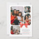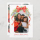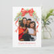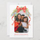 Arc rouge peint à la main et cloches argent personnalisées photo et nom carte de vacances Noël. Personnalisez avec votre propre nom de famille et message plus cinq photos de votre propre pour en faire le vôtre. Avec des arcs rouges et des cloches décoratives couleur argent avec feuillage festif vert et des baies rouges, toutes les aquarelles originales peintes à la main directement de l'artiste et designer Sarah Trett exclusivement pour www.mylittleeden.com sur Zazzle.