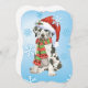 Celebrate the holiday season with a cute Great Dane puppy wearing a Santa hat and scarf amid snowflakes with the words, Happy Howlidays on the back! Great for Great Dane-loving family and friends.