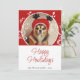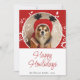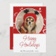 Joyeux Howlidays Red Foliage Chien Nom Photo Holiday Card. Joli feuillage blanc sur un arrière - plan rouge. Personnalisez l'ornement avec la photo de votre chien, le nom de famille, l'année et le message à l'arrière.