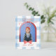 Send heart day greetings with this Happy Valentine's Day Arch Photo Blue Gingham Holiday Card! This design features an arch photo frame with script typography and a blue gingham background. Customize the details on Zazzle! Have a custom request? Message me!
