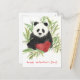 Happy Valentine's Day greetings decorated with a fluffy panda in a patch of bamboo with his bright red valentine heart hand painted with watercolor.