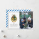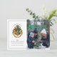 This festive card is designed to delight any Harry Potter fan, marrying traditional holiday imagery with personalized wizarding charm. The design features a prominent display of the Hogwarts Crest, personalized with the family's name beneath it, set against a crisp background framed by a rich red color. Complementing this magical theme is a heartwarming, full-color family photograph captured in a beautiful snowy outdoor setting, conveying traditional winter warmth. The photo is cheerfully overlaid with the "HAPPY HOLIDAYS" greeting, making this a unique and enchanting way to share seasonal greetings with a touch of magic.