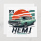 Le design du cool "1970 Hemi Roadrunner" dépeint la voiture musculaire Roadrunner classique contre un arrière - plan de coucher de soleil rétro. Ce design attrayant "Hemi Roadrunner 1970" fait un grand cadeau à l'amateur de voiture / amateur de voiture dans votre vie.