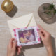 Joyeuse carte de Saint-Valentin avec un motif Coeur d'aquarelle mignon avec différentes nuances de rose, de rose et de rougir sur un arrière - plan blanc. Une belle typographie avec le texte noir "Heureuse Sainte-Valentin", et une photo avec la famille et l'année que vous pouvez changer à partir du menu personnalisé. Parfait pour souhaiter la Saint Valentin à vos proches et répandre la joie.
