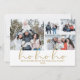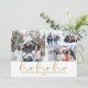 Une carte de vacances photo élégante avec vos 4 photos préférées spéciales et votre nom de famille et date ensemble dans la typographie moderne classique avec un script chic message de Noël. Conçu par Thisisnotme©