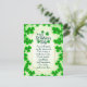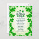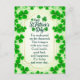 Visual Elements: The card features numerous green shamrocks, including a heart shape made of shamrocks near the top center. The overall color scheme is green and gold.