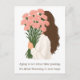 Celebrate growth, wisdom, and the beauty of every stage of life with this elegant greeting card. Featuring a soft, minimalist illustration of a woman holding a bouquet of delicate pink flowers, this design is paired with the uplifting message: “Aging is not about time passing, it’s about blooming in new ways.”