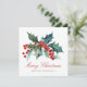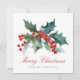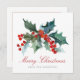 Une carte de vœux festive et élégante pour la période de Noël, ce design présente des brins de houx et des baies en teintes aquarelles rouges, vertes et sarcelles. L'aspect a une attrait traditionnel avec un style artistique moderne. Personnalisez le modèle de texte avec le nom de votre famille sur le devant de la carte et vos noms individuels au dos. Vous pouvez utiliser le message exemple au dos tel quel, ou le modifier avec la formulation souhaitée.