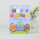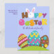 Hoppy Easter Eggs Rabbit Funny Personnalisé Nom Texte Carte de vacances pour souhaiter à vos amis et à votre famille tout le meilleur pour les vacances dans un drôle de style de dessin animé